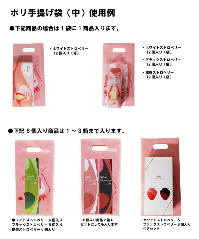 【お菓子と一緒のご注文をお願いいたします。また、ご希望の枚数分のご注文をお願いいたします。】苺にチョコレートを染み込ませているイラストをあしらった、Quaのオリジナリティ溢れる手提げ袋です。贈り物用にいかがでしょうか。